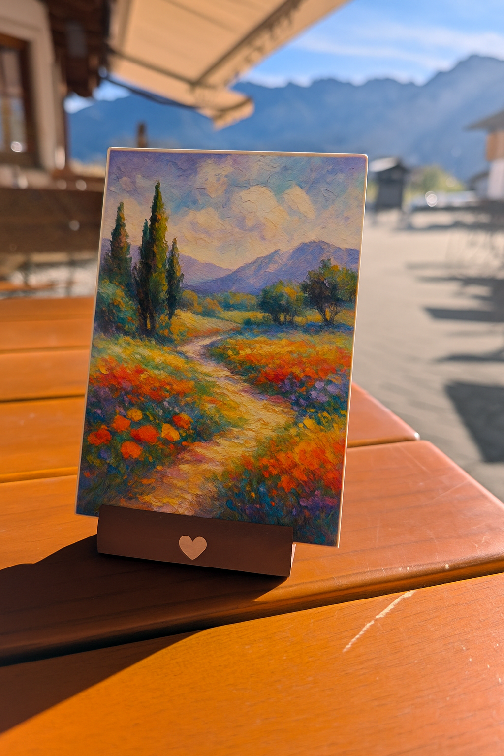 Wir drucken dein Motiv als HD-Metallbild, verpacken es sicher und versenden es. Das Bild kommt fertig zum Aufstellen oder Aufhängen an – ideal auch als fertiges Geschenk.